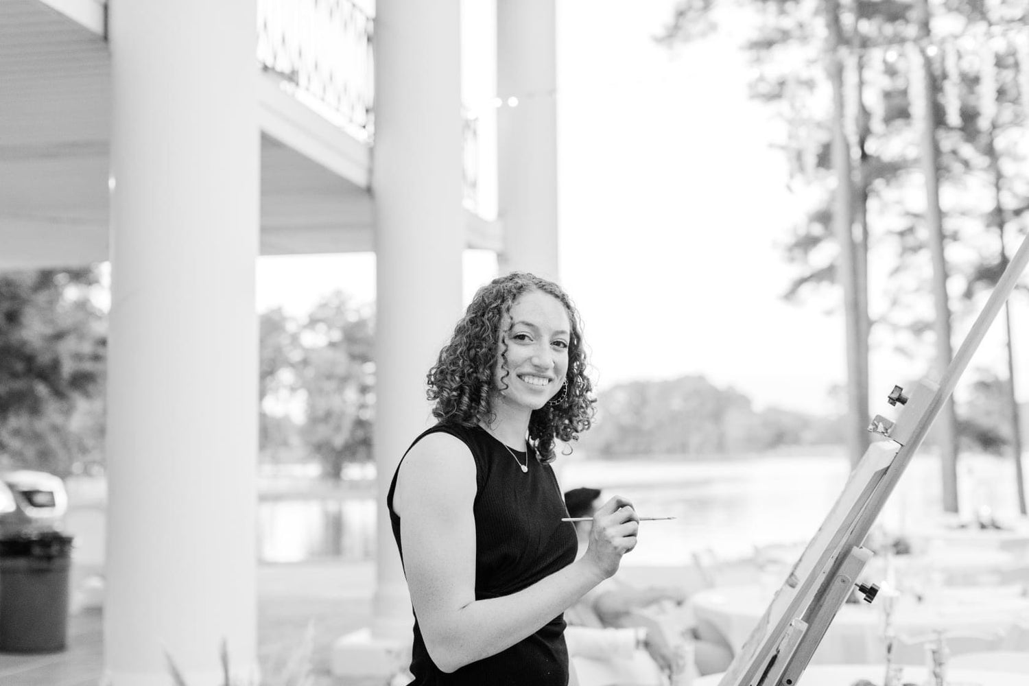 Dyani will show up to the venue a few hours before the ceremony to begin painting the backround. You will have a choice of having the wedding ceremony or first dance painted. Dyani will complete the painting during the reception. Although the painting may take a few days to dry, the couple will be able to take their lovely painting home on the wedding day.